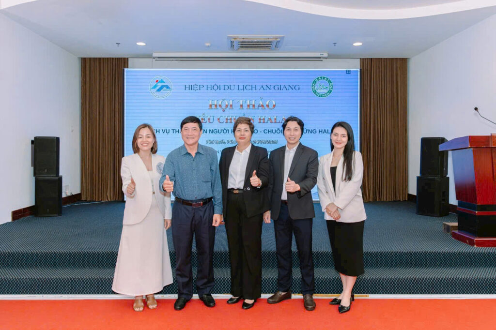 Công ty TNHH Halal Quốc Gia Việt Nam (VNH) trân trọng gửi lời cảm ơn đến Lãnh đạo Sở Du lịch An Giang, các Cơ quan Ban ngành địa phương, cùng Hiệp Hội Du lịch An Giang – Chi Hội Du lịch Phú Quốc đã tạo điều kiện để VNH vinh dự tham gia với vai trò diễn giả tại Hội thảo “Tiêu chuẩn Halal – Dịch vụ thân thiện người Hồi Giáo”.